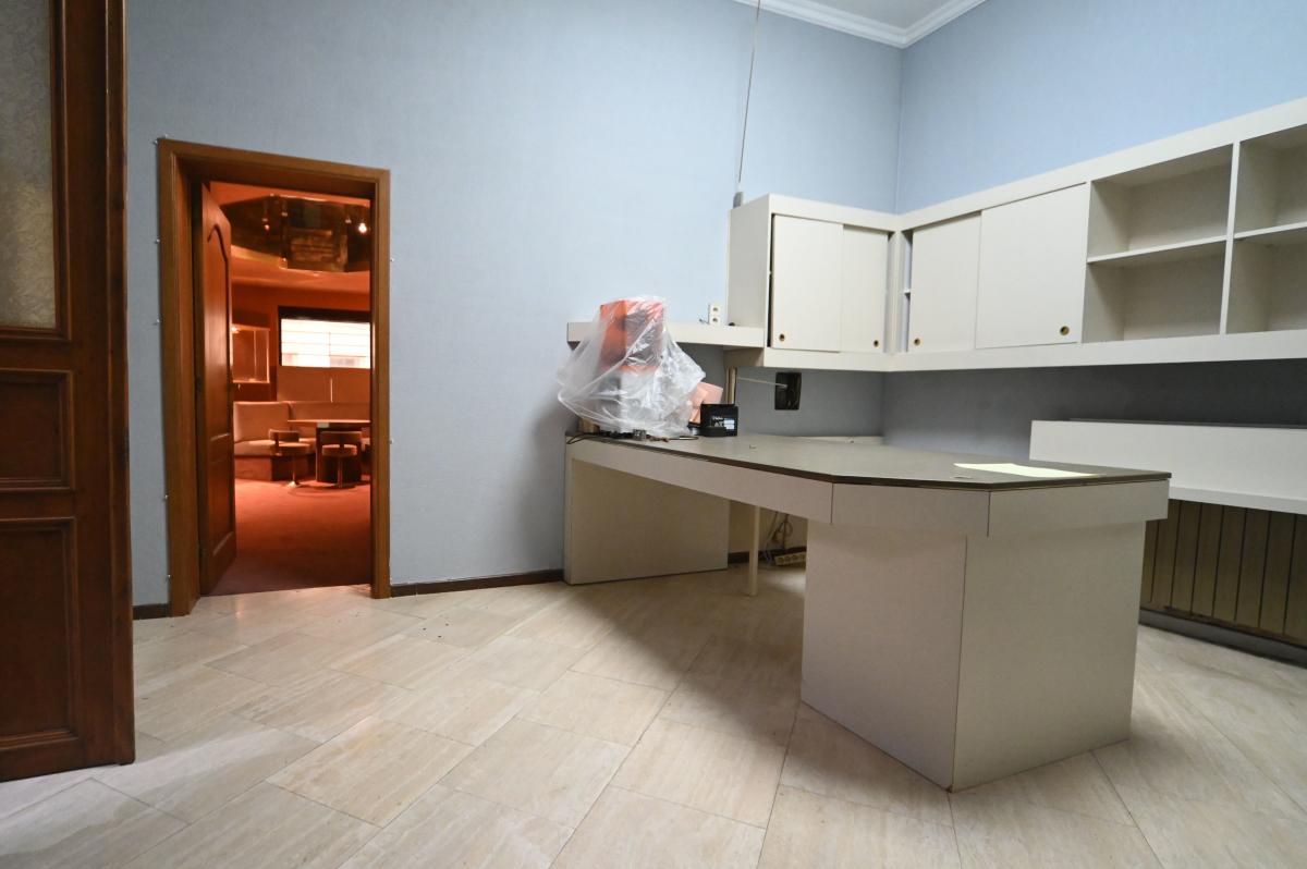 - Bureau central : 21,41 m² (4,67 x 4,58 m), petit sas vers la pièce arrière compris.